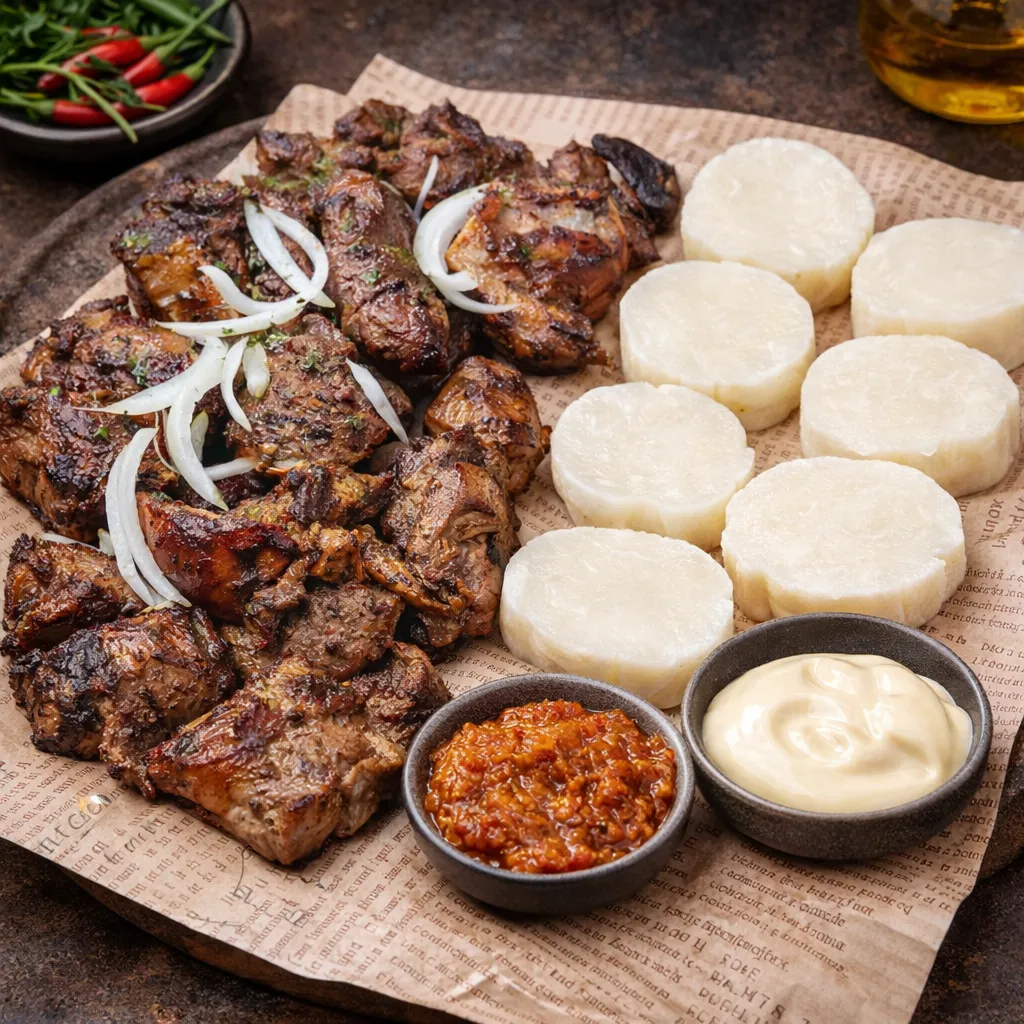La puissance des viandes grillées associée à la texture douce du manioc offre un contraste irrésistible, idéal pour les amateurs de plats généreux et authentiques